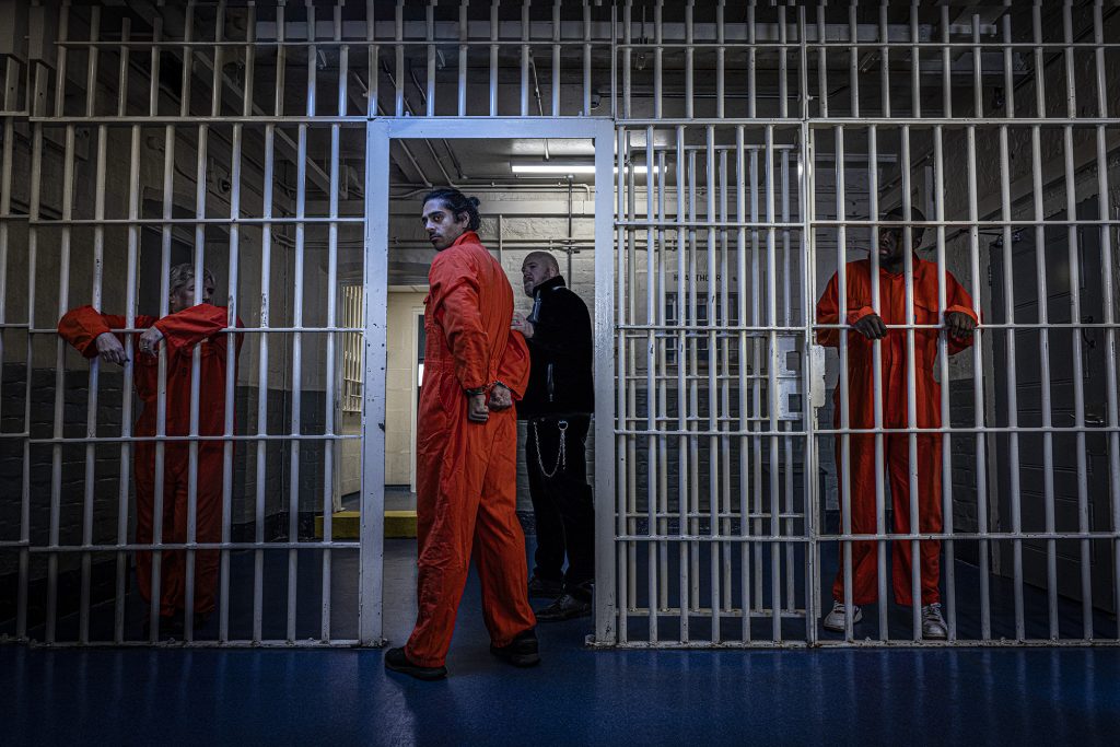 The first couple of shots are shot on wide and you can see the vanishing point disappear behind the prison guard or the group of five subjects. The depth of these images are outstanding and offer a great viewpoint.