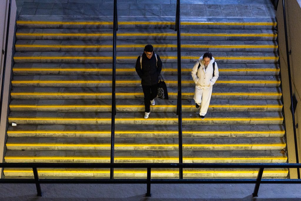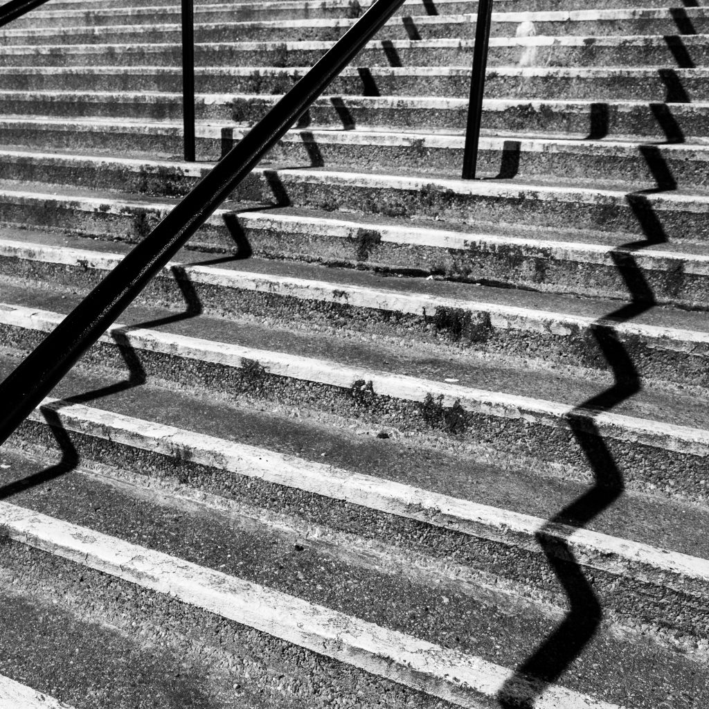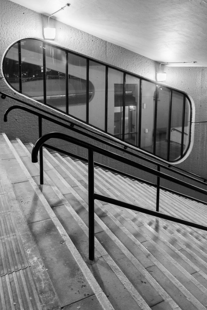 After dumping my bags in the car in the car park and helping a woman who couldn’t unplug the electric charging cable from her VW I took off towards the centre of the city carrying my Leica Q3 on my wrist strap. I came across a lovely little stairway that went up between two railway bridges over the road. The light differences between the natural light from the stairway and the artificial light under the grubby, pigeon fouled bridge were pleasing to my eye so I stopped here and made some images of the scene and then with some people walking through. The pictures with people moving through the scene seemed to work better for me.