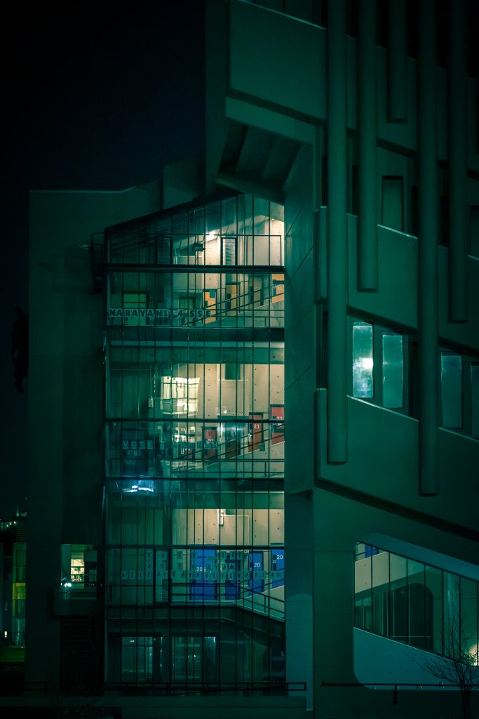 I altered the aperture also to around f/7.1 or f/8 to get a greater depth of field and this meant that the shutter speed was over 1/4 sec all the way up to around 2 seconds. I was shooting the ISO at around 100, 160 or up to about 400. I was shooting the different scenes around the buildings, pointing up at some details and some concrete shapes. At around 22:00 I decided that I’d wrap up and head off back to my hotel so that I would be up and about early enough in the morning.