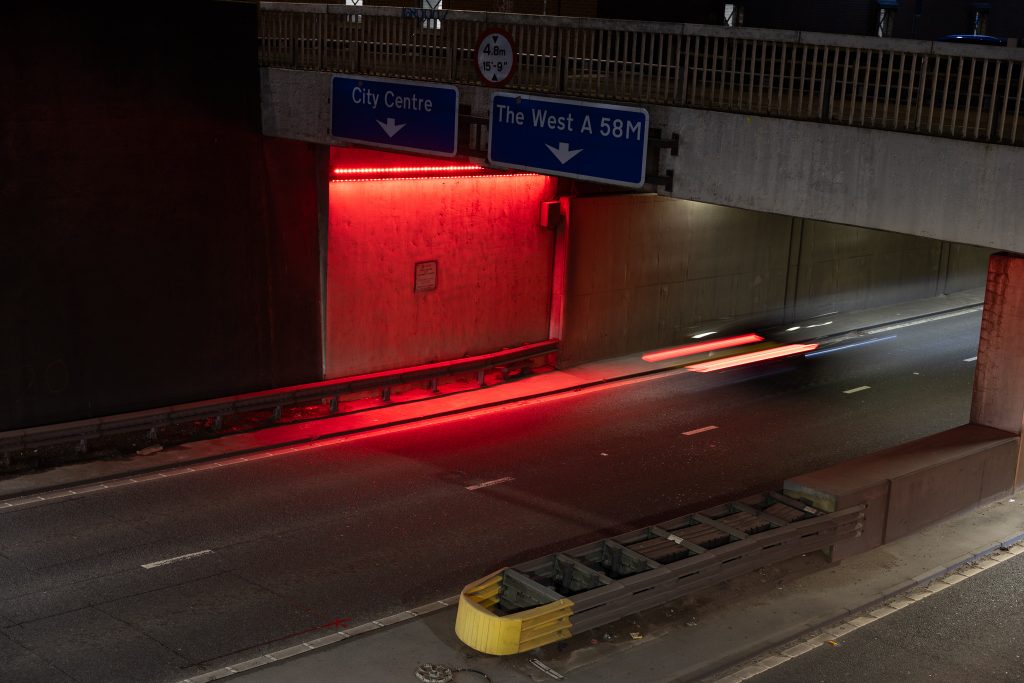 Walking back I spotted the big geometric car park lit up with blue and pink lighting, they produced a lovely image. Then I found an overpass, or bridge over the main dual carriageway so I played around a bit with some longer shutter speeds to try and capture some light trails etc. I even tried some zoom pulling on the traffic but it was less than acceptable.