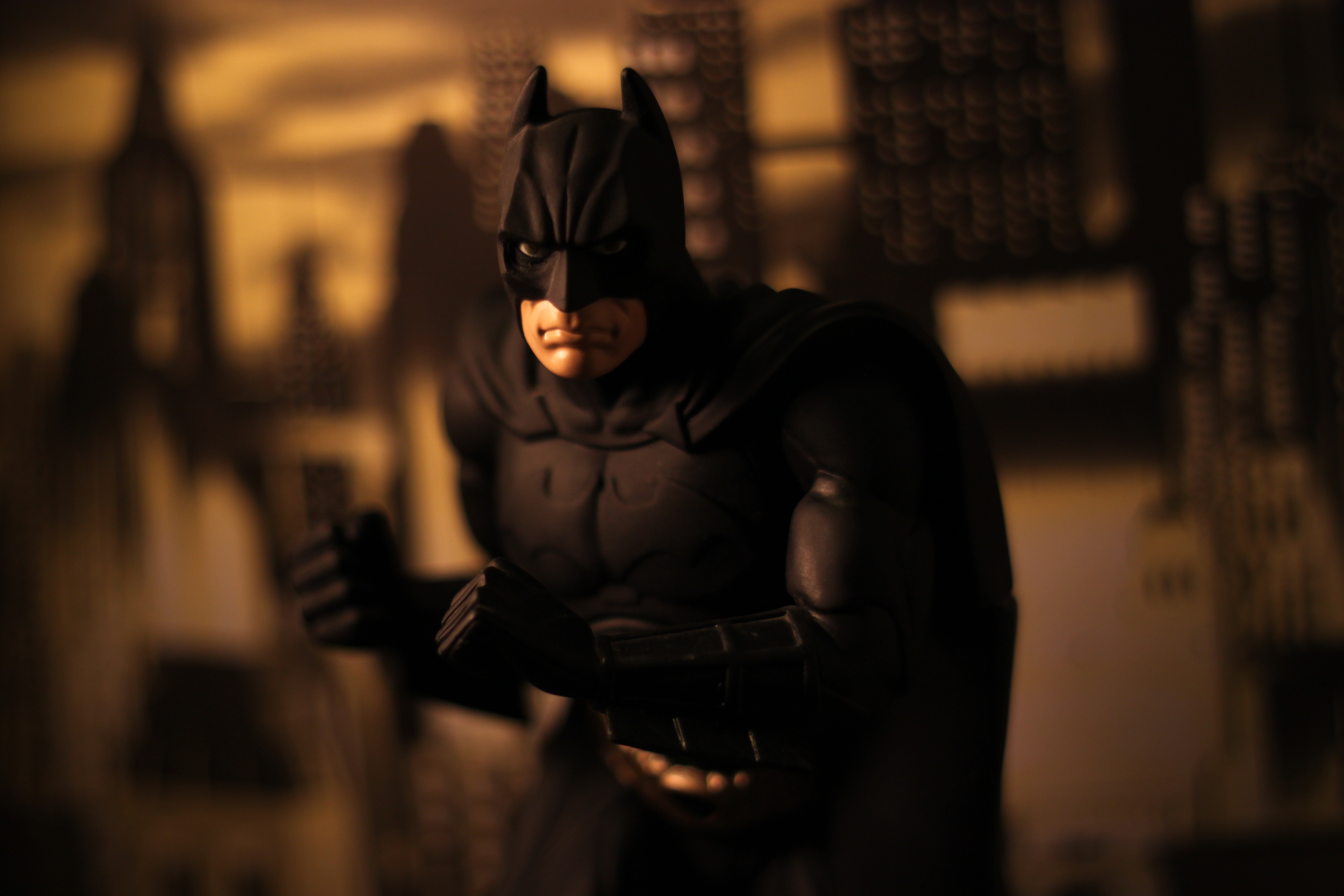 Several pictures were taken, focusing on the eyes of the Dark Knight meaning his leading fist was slightly out of focus and the rest of him and the city scape even more-so. I’d underexposed too by 2 stops and had the ISO set at 100 for less grainy pictures.