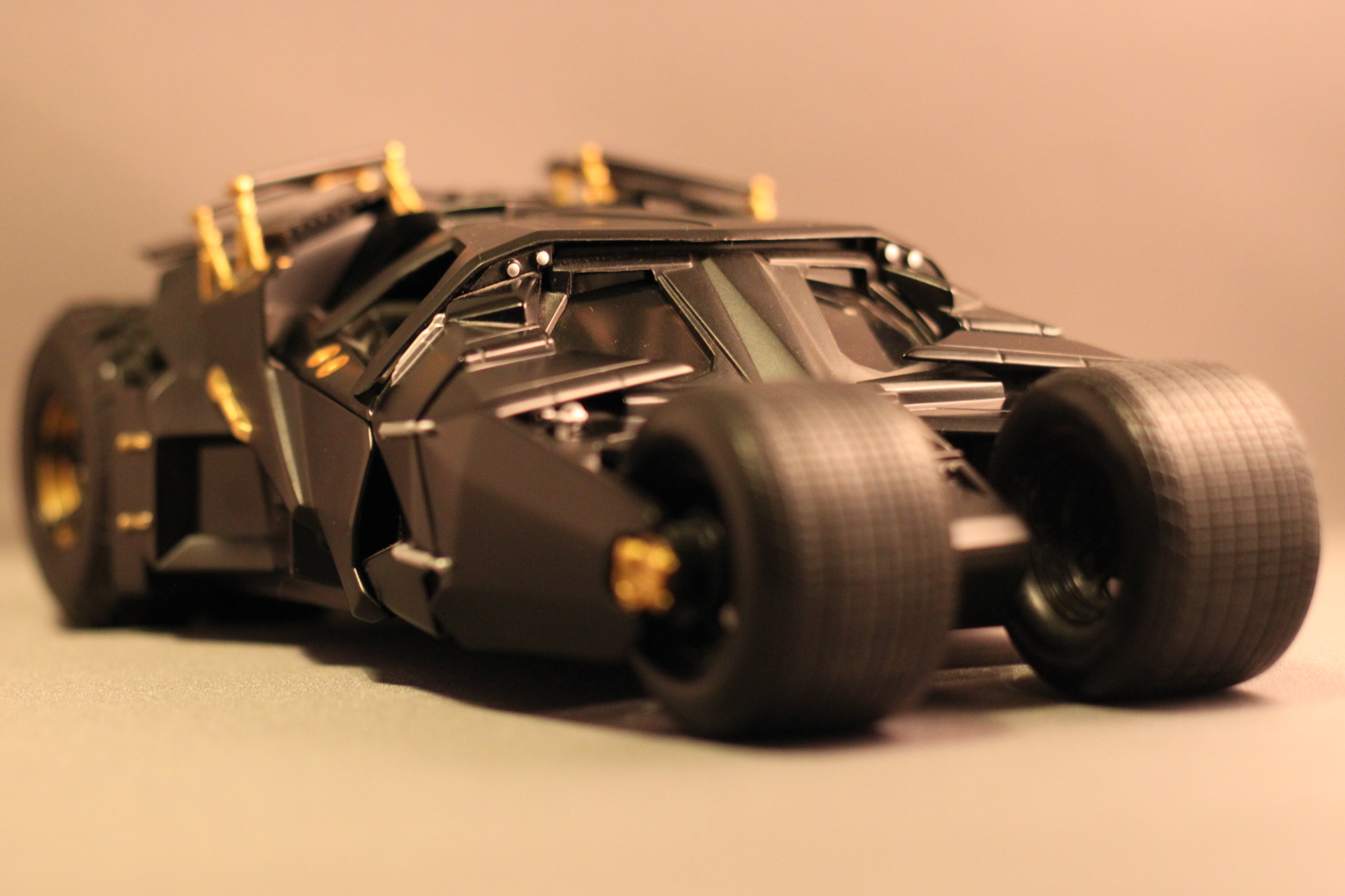 The next picture to be sucked into the lens onto the now Bat-shaped ccd sensor was of a Hot-Wheels model of the Tumbler Batmobile from Batman Begins. I tried many different focus points to use as the central focus and have the blurry stuff in front and behind, but the pictures I took were all too sharp or too blurry. In the end I settled with an F/2.8 on my nifty fifty and got this result. Not the best but still a good example of Shallow DoF.