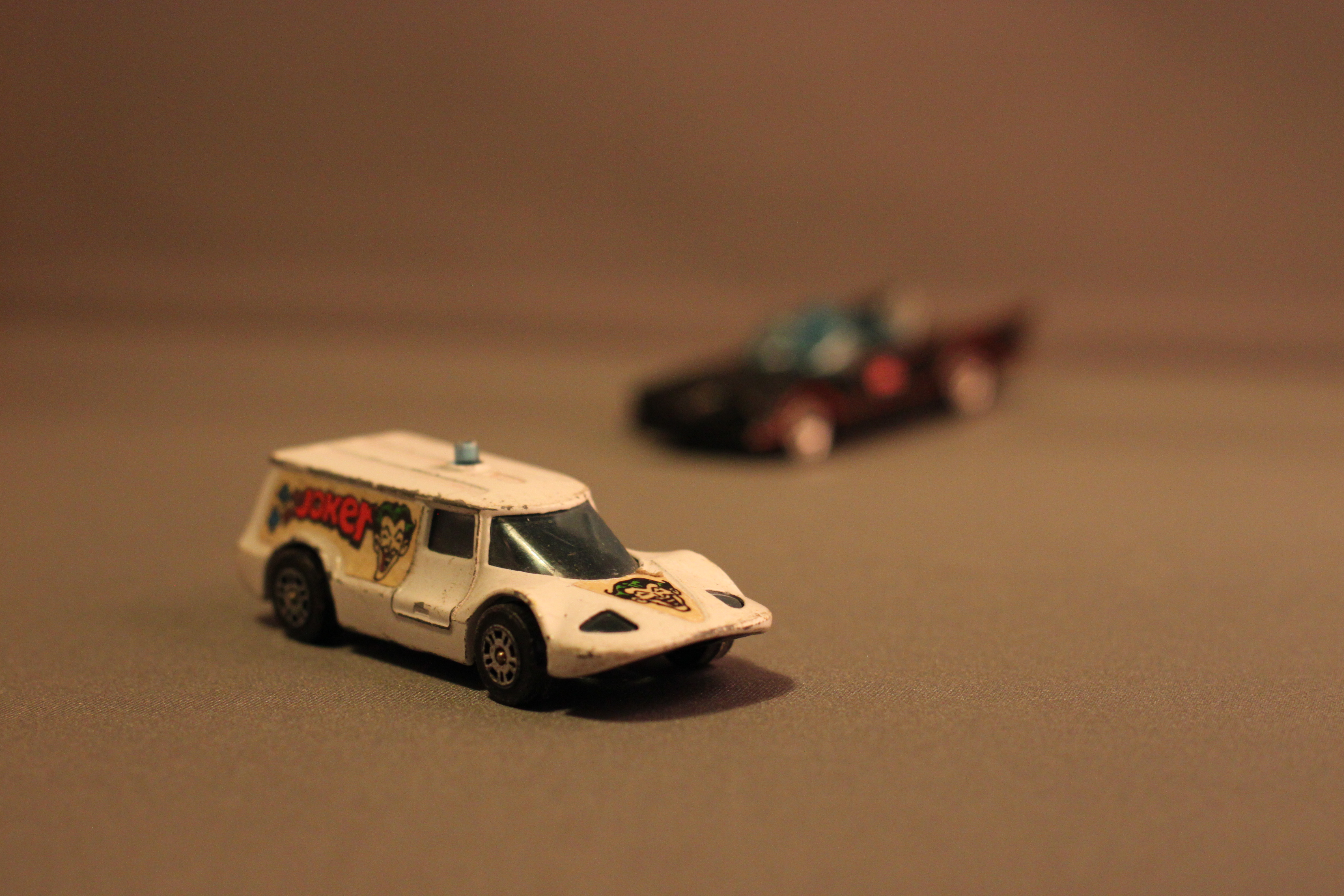 It was around this time that I thought about using models (scale models not topless babes) to get the similar effect as tilt-shift so when I returned home I fetched some of my Batman Toys, sorry, Memorabilia down from the attic and take some close up shots. I dug out a few of my old die-cast models of the 1960’s Batmobile as designed by George Barris, based on the Lincoln Futura concept car and also a couple of Batcopters, Jokermobiles, Batplanes and action figures. I set up my little studio box thingy and set about photographing them using my nifty fifty but found that sometimes better effects and results were forthcoming from my 70-300 Tamron lens on a tripod.