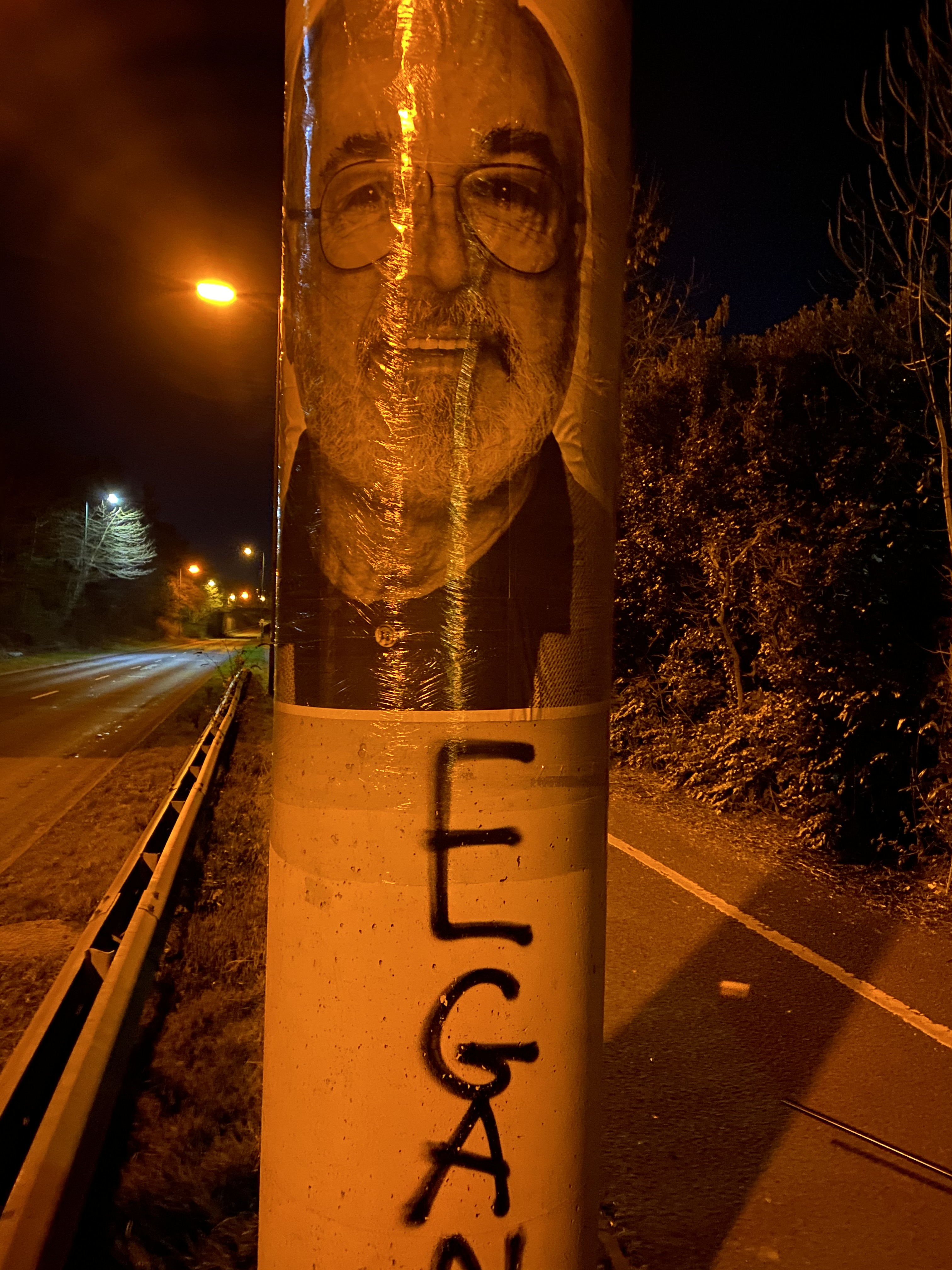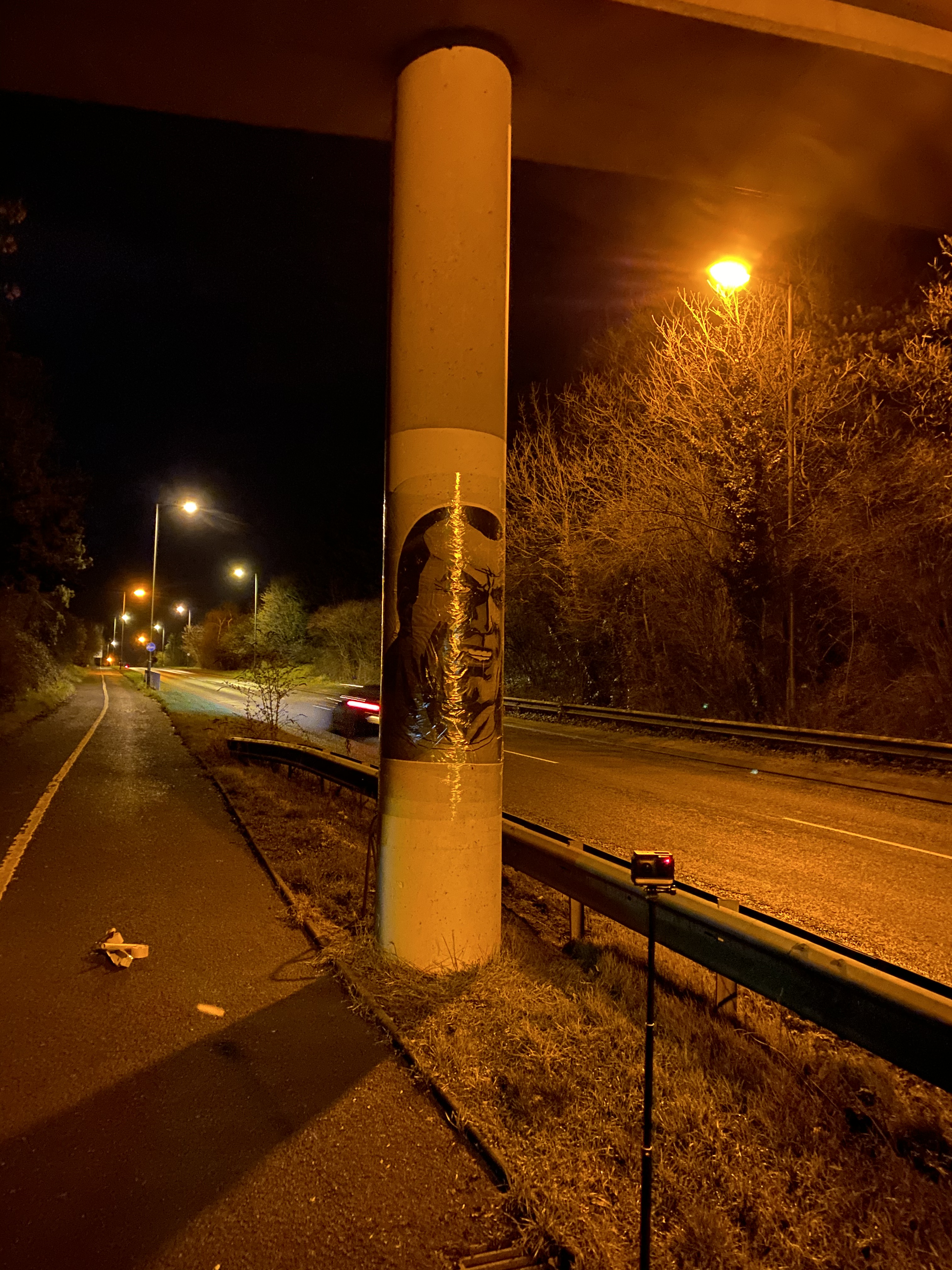 We got to the site just after midnight and barring a few cars driving past it was relatively peaceful, whenever a car appeared in the distance we downed tools and pretended we were walking on the footpath, before returning to the job in hand after they’d passed us.