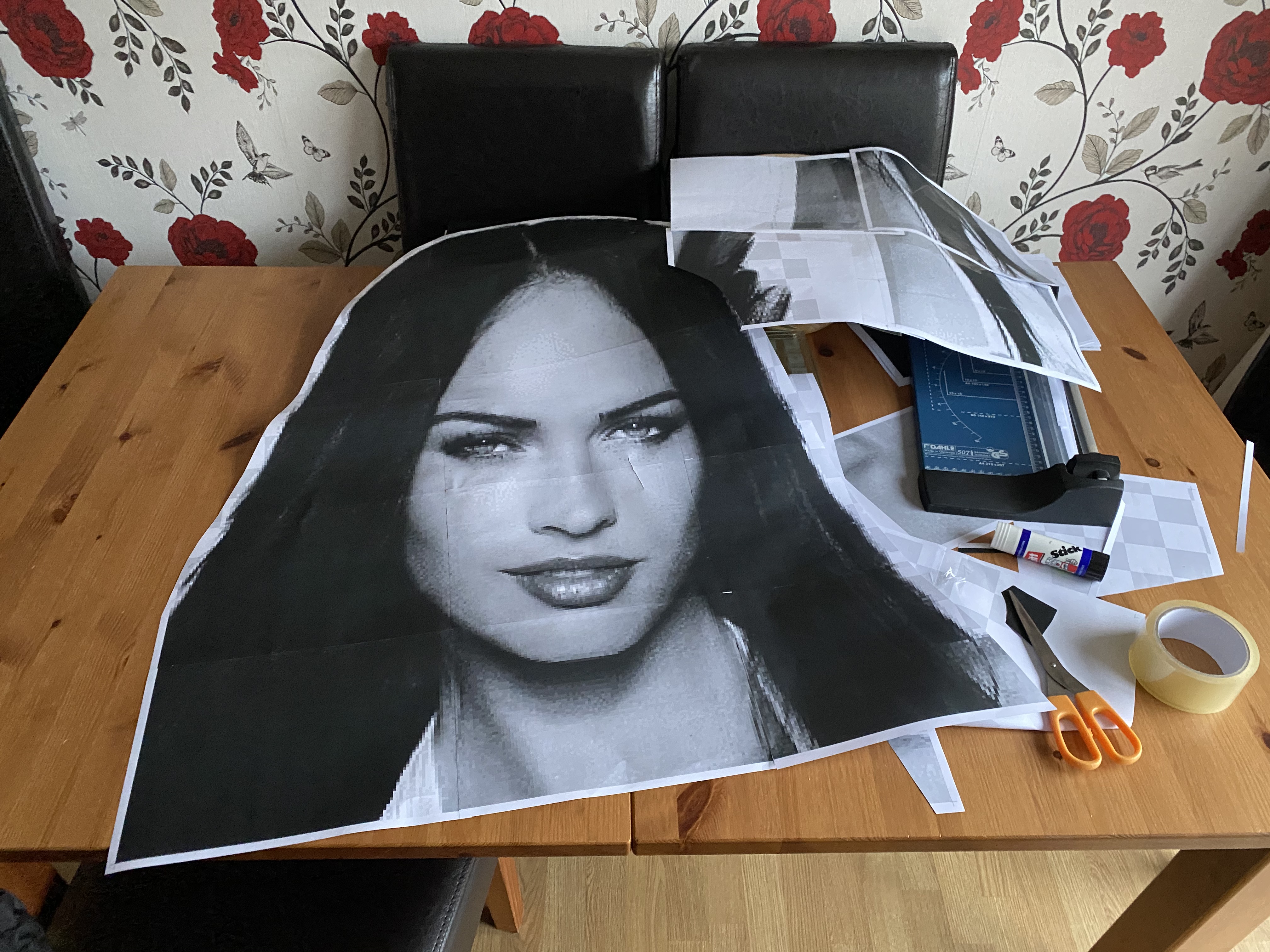 The picture I chose had some cleavage which I found unnecessary so I cut it down to make it easier to mount it above the VEGAN word. By this time my wife had figured out what we were up to, after walking past the bridge and seeing the NEGAN in place before it was removed. She asked not to be involved so she could have plausible deniability.