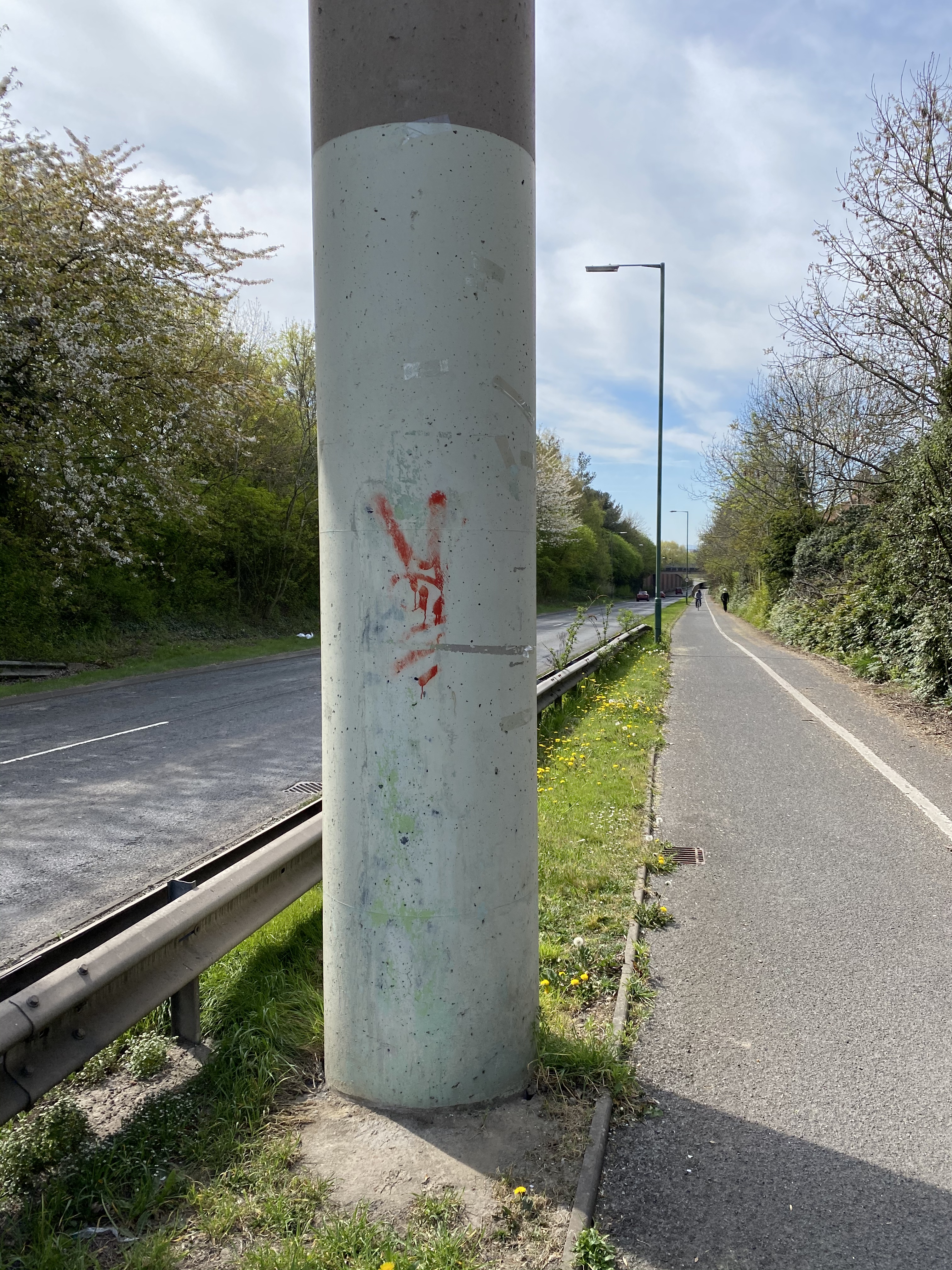 This road is thoroughfare from Monkmoor to the Reabrook and Meole Brace areas so we tend to travel down there often. On the bridge support column closest to the pavement and cycle path was a piece of simple graffiti.