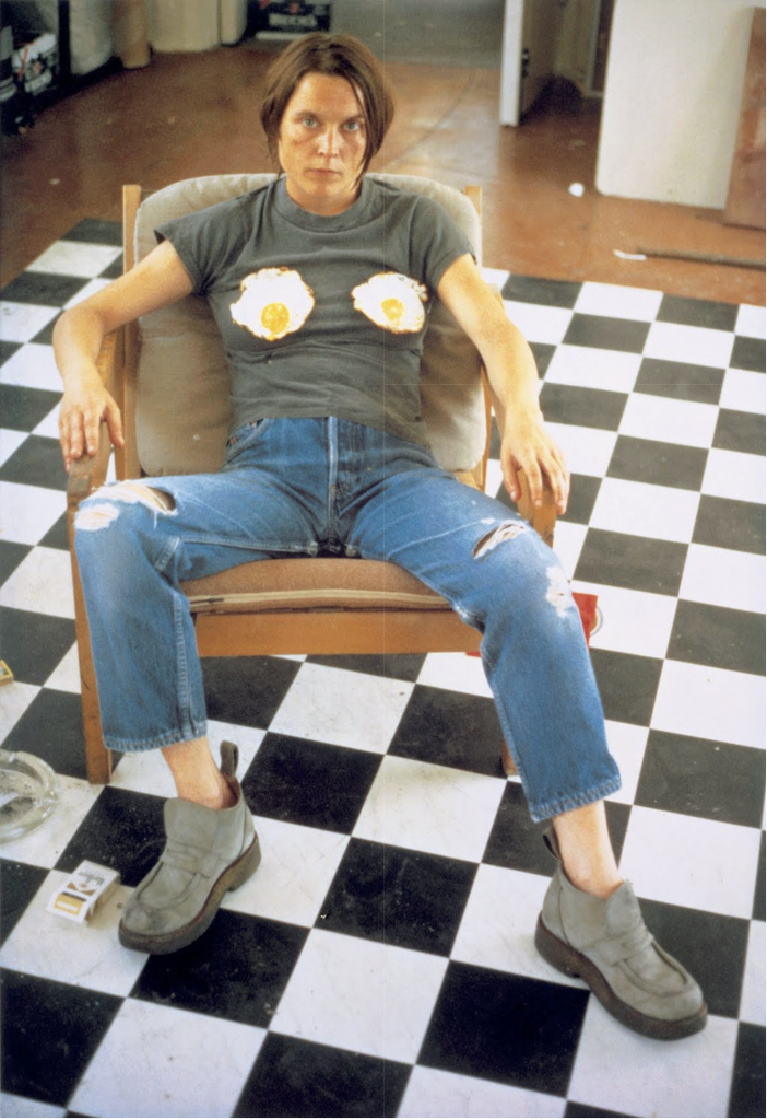 The image of the person in the chair was Self Portrait with Fried Eggs by Sarah Lucas 1996