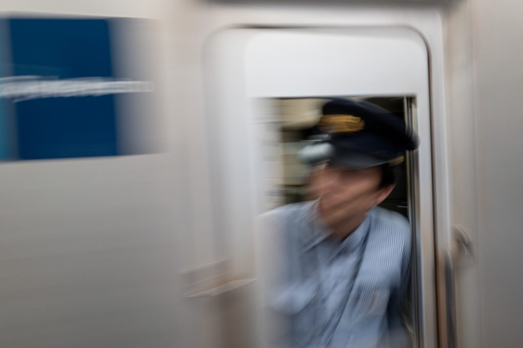 Staying on the metro/subway system for a moment, my second photograph depicts a Train Conductor with his head out of the window performing the act of Shisa kanko, where they monitor, point and call out the steps of leaving a station. They can often be seen pointing at the doors, the signal lights, the platform based staff and when the train moves out they remain focussed on being prepared to stop the train quickly, in the event of a passenger or technical issue.