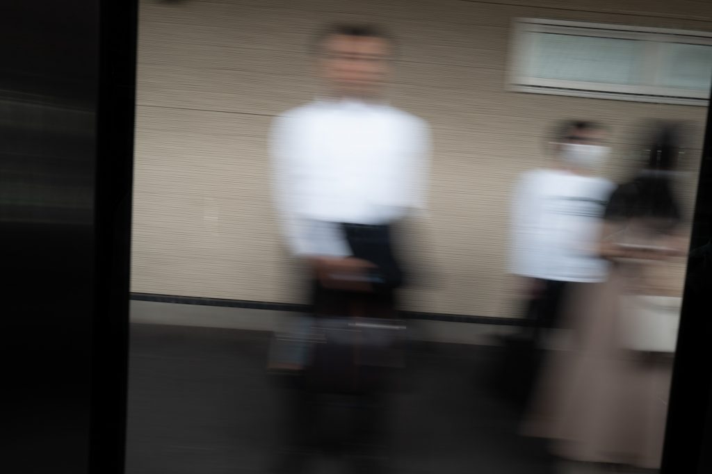 This image was made between Tokyo and Omiya of a passenger awaiting a train to board. I had lowered shutter speed to 1/30th sec and the ISO 100 with an aperture of f/8.0 meant that the focus point would be in the correct area of the platform (zone focussing) whilst the speed had a dynamic feel to it. The businessman on the platform was stood in line and next to him were two other passengers also queueing, one with a face mask on. The enlarged/widened face of this salaryman makes it almost appear that there are three faces on his shoulders which is why this photo interested me. Is this person on his way to work, in the early afternoon, or has he been sacked and on his way home, or is he also a tourist on his way to the same place I am? All these questions come to mind and that mystery is one of the many reasons I like capturing candid shots of people going about their daily business.