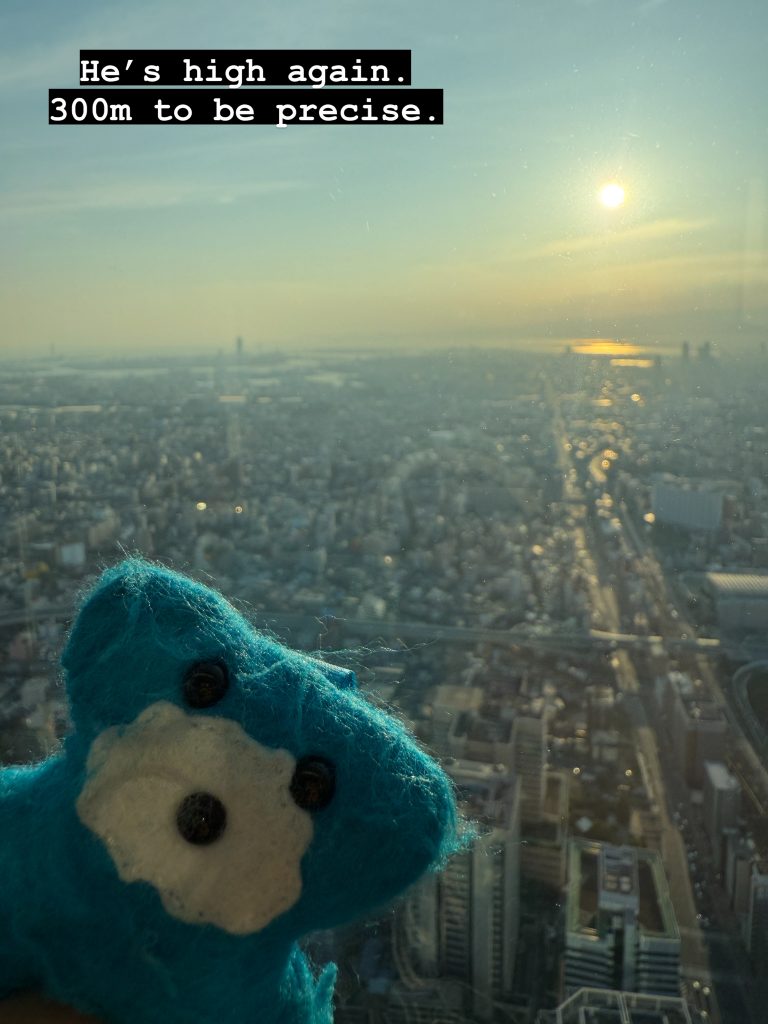 One of the gifts I received was a small blue bear keyring, based upon the design of a Teddy Bear iI had as a baby, its name was Goth. My daughter had created and made the small bear with her expert sewing skills and left it with me. Before I left for Japan I made sure I took Goth with me to photograph him on a journey around Japan.