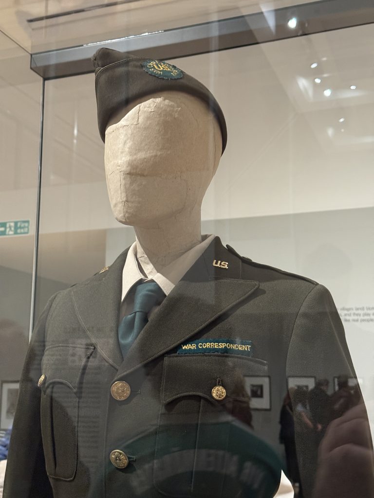 In the centre of this room is a War Correspondent US Army uniform complete withe her skirt and hat. Alongside this is a Rollieflex Twin Lens Reflex (TLR) camera. I’m not 100% sure if this is Millers own camera or an example of the camera she would have used. It looks spotless so I suspect it’s not hers or has been restored in the past.