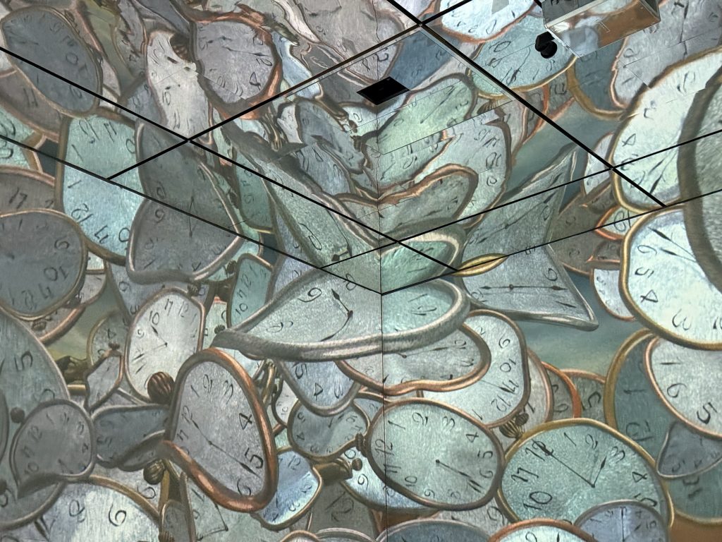 A room full of pocket watches appeared, yet another Dali creation, and as they all settled down to become his famous work The Persistence Of Memory the discombobulation provided by the movements and the sounds was complete.