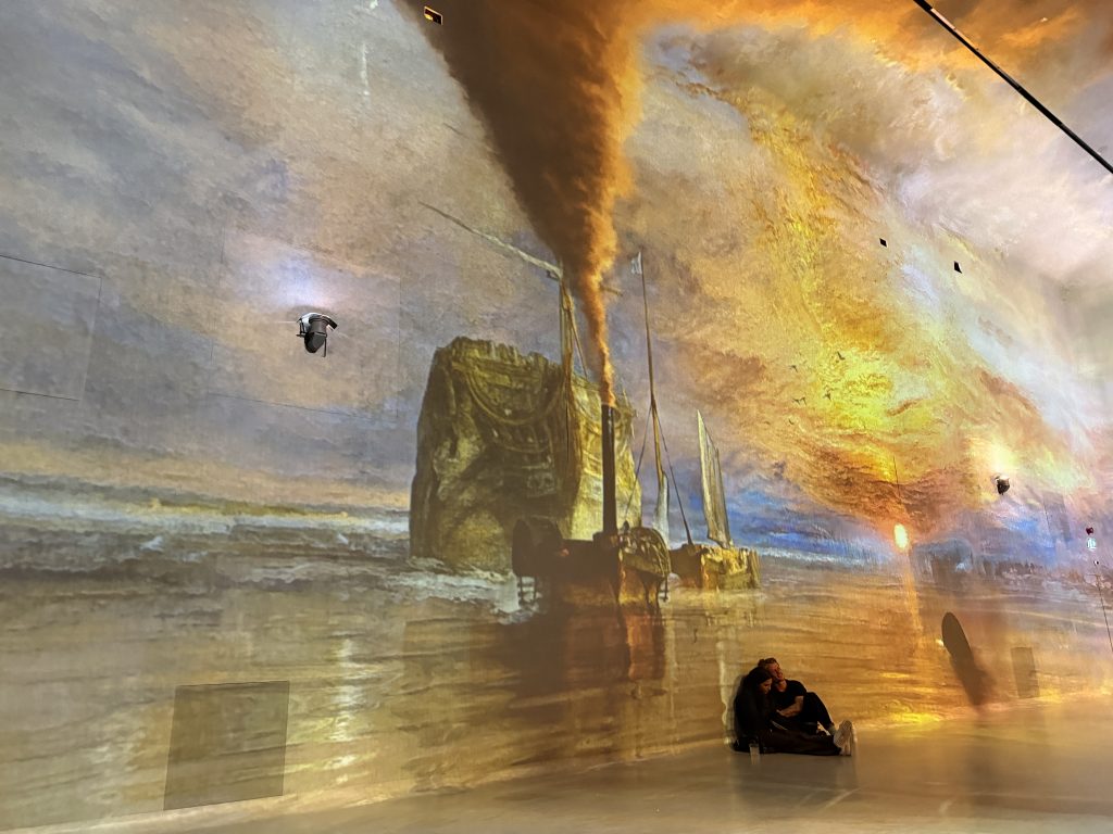 I had an emotional moment in this room too as the painting of J.M.W. Turner’s “The Fighting Temeraire” was animated on the main screen. I had a physical reaction to the sight as a story told to me by my Dad not long before he died recounted an experience he had as a child. He had told me that he’d stood in front of the famous Turner painting and began to cry. He couldn’t remember why he’d cried and what had caused it, but it is a story that stayed with me. Upon seeing this being projected onto the gymnasium sized room’s walls it had reminded me of him and the story and I wondered what he might make of this if he’d still been alive. I can’t imagine that he’d understand the technical side of the challenge but he’d definitely understand the reasons behind it and I’m sure he would have appreciated every second of the experience.