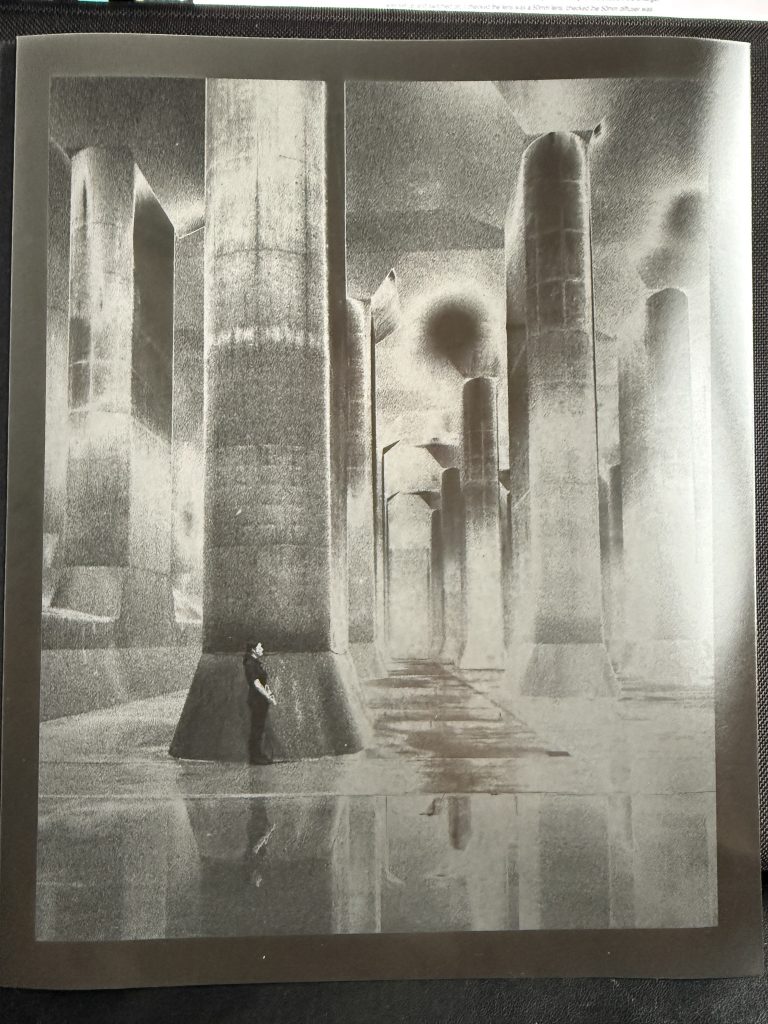 I chose a negative from the sheet that I had brought with me, which contained many shots from my trip to Japan in June this year. The first one I chose was a shot from the Tokyo Metropolitan Outer Area Underground Discharge Channels which features a set of huge concrete pillars underground that act as a pressure relief vessel in the cause of reducing flood damage to the city of Tokyo.