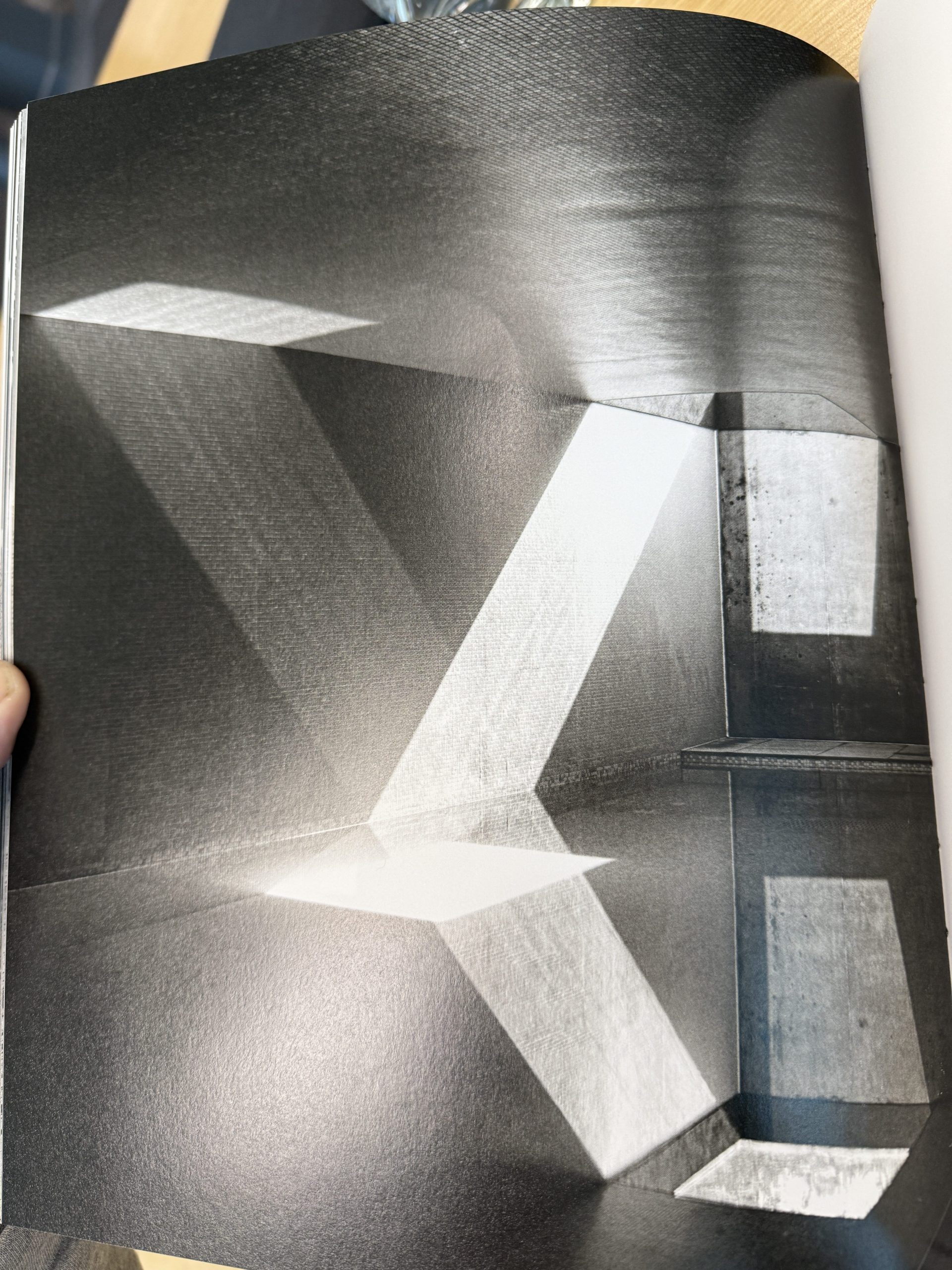 After the tutorial I disappeared over to the library to carry on the research for my dissertation so I walked up to the second floor and started to make my way to the tables by the windows. I stopped in the photography section and had a quick squint at the shelves. I noticed a book in a black sleeve called Composing Space, published by Phaidon from 2012 by Hélène Binet. Upon opening the book on the table I saw a collection of photographs that I would say my work was inspired by, if I’d ever seen the work before.