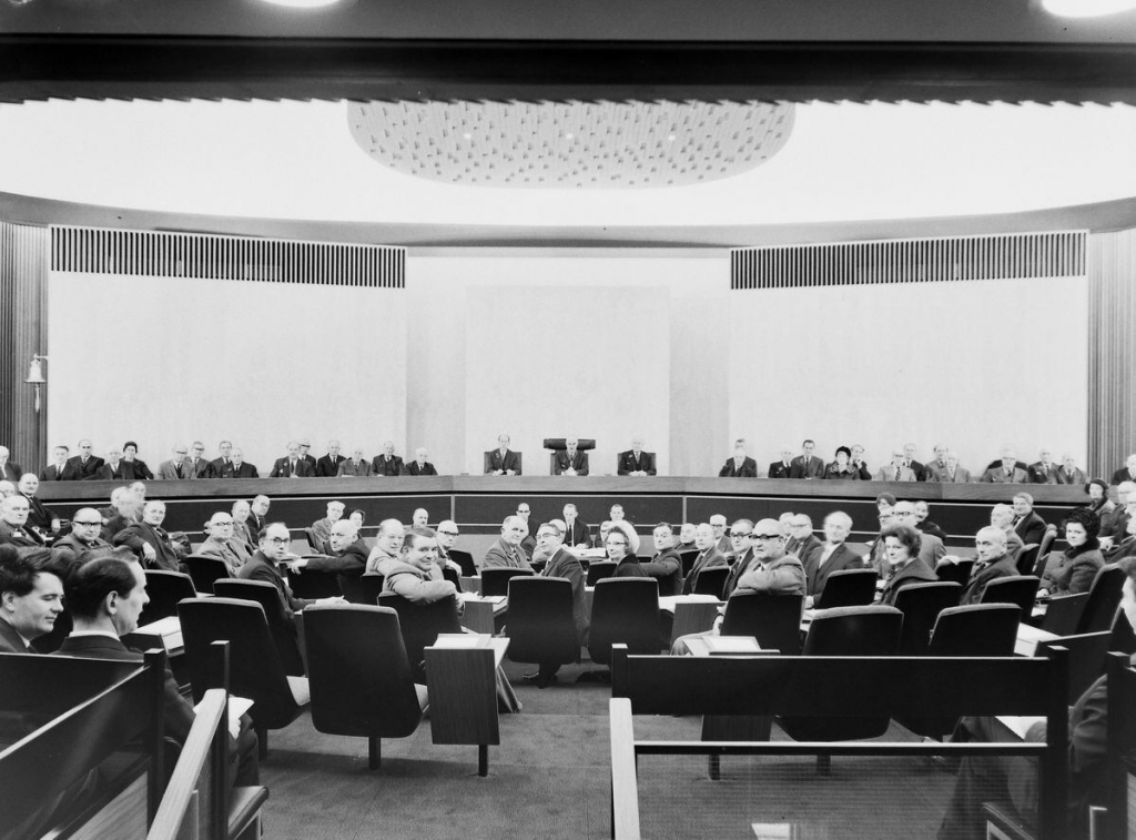 When we first sat down at the table and awaited our coffees he shared with me a USB stick of photographs, some which I could share trouble free, some that might need permission, and others that were taken in works time so should not be shared widely. In one set of the images he’s collected a few black and white photos from the RIBAPix website before it went to a paywall. The photos are the architects photos following the completion of the Shirehall Complex and shows off some marvellous original features such as the open bases of the buildings, the kids playground, the fountains and the freshly installed Portland Stone of the curved Council Chamber that gives it a unique appearance.