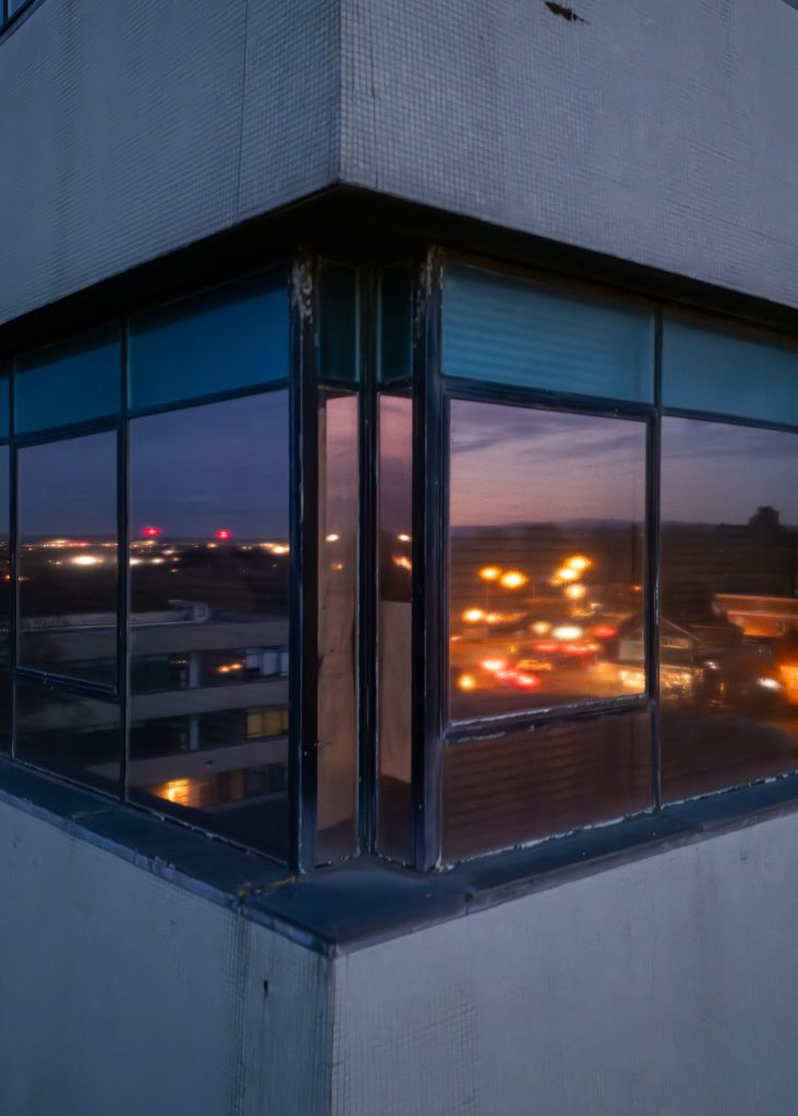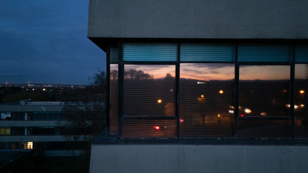 From here it was time to fly the length of the fourth floor, closer in and catch the reflections of the traffic on the roads behind as well as the sky’s last burst of light. The video came out quite well also as well as the photos that you can see beneath.