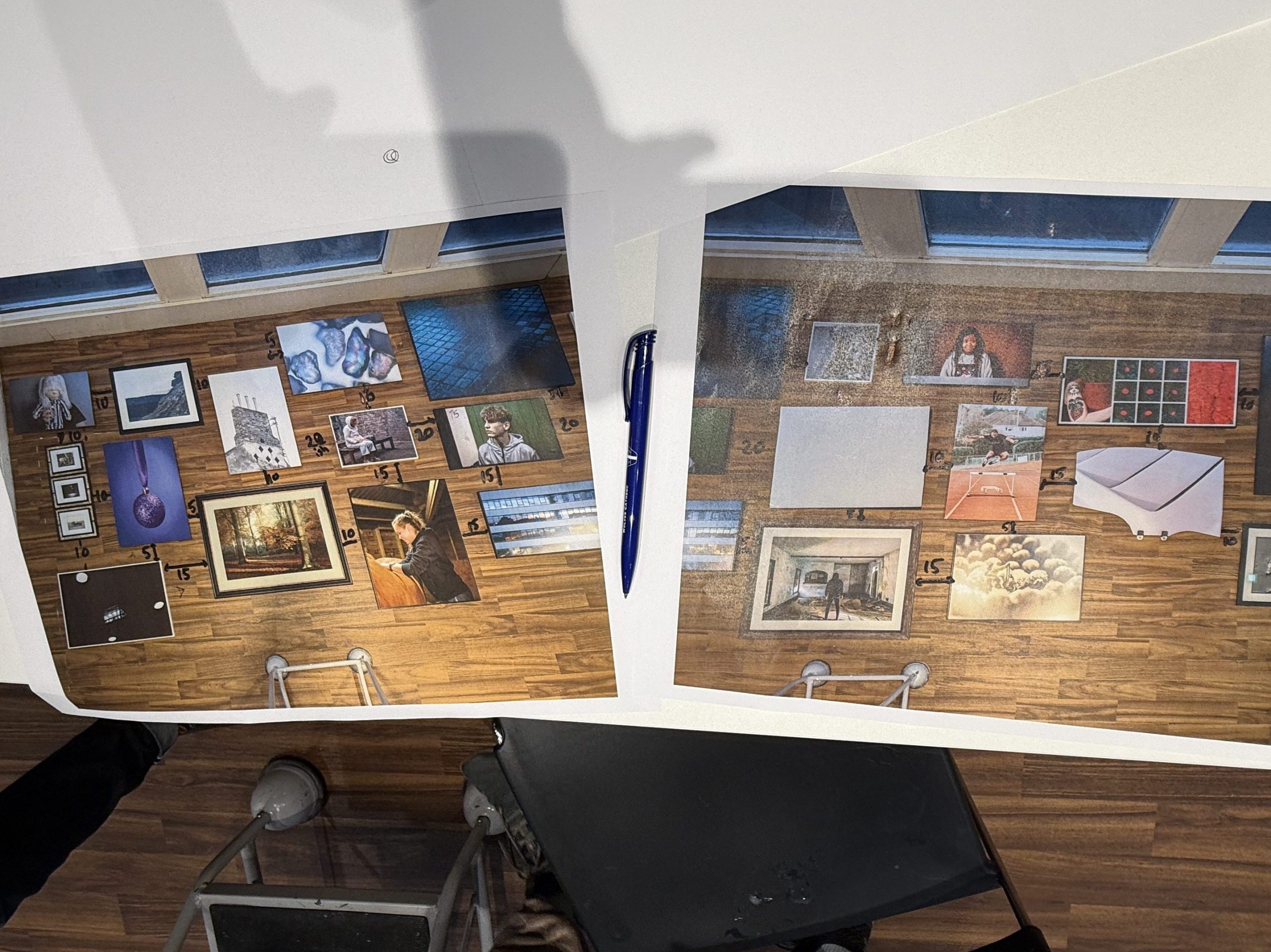 The layout of the pictures was moved around by four or five different people, and with each person their tastes changed what they felt. I had no problems with any of the layouts but I could see that some people were trying to stop being too dark in the centre of the wall and some people wanted to balance the sizes of the images across the whole wall. Others were talking about lines and patterns or shapes that worked with a few images being grouped together too. I really do think it is all subjective but the tutors and course leaders know what they’re talking about and worked out a good plan that, although changed a little at the end, worked out really well.