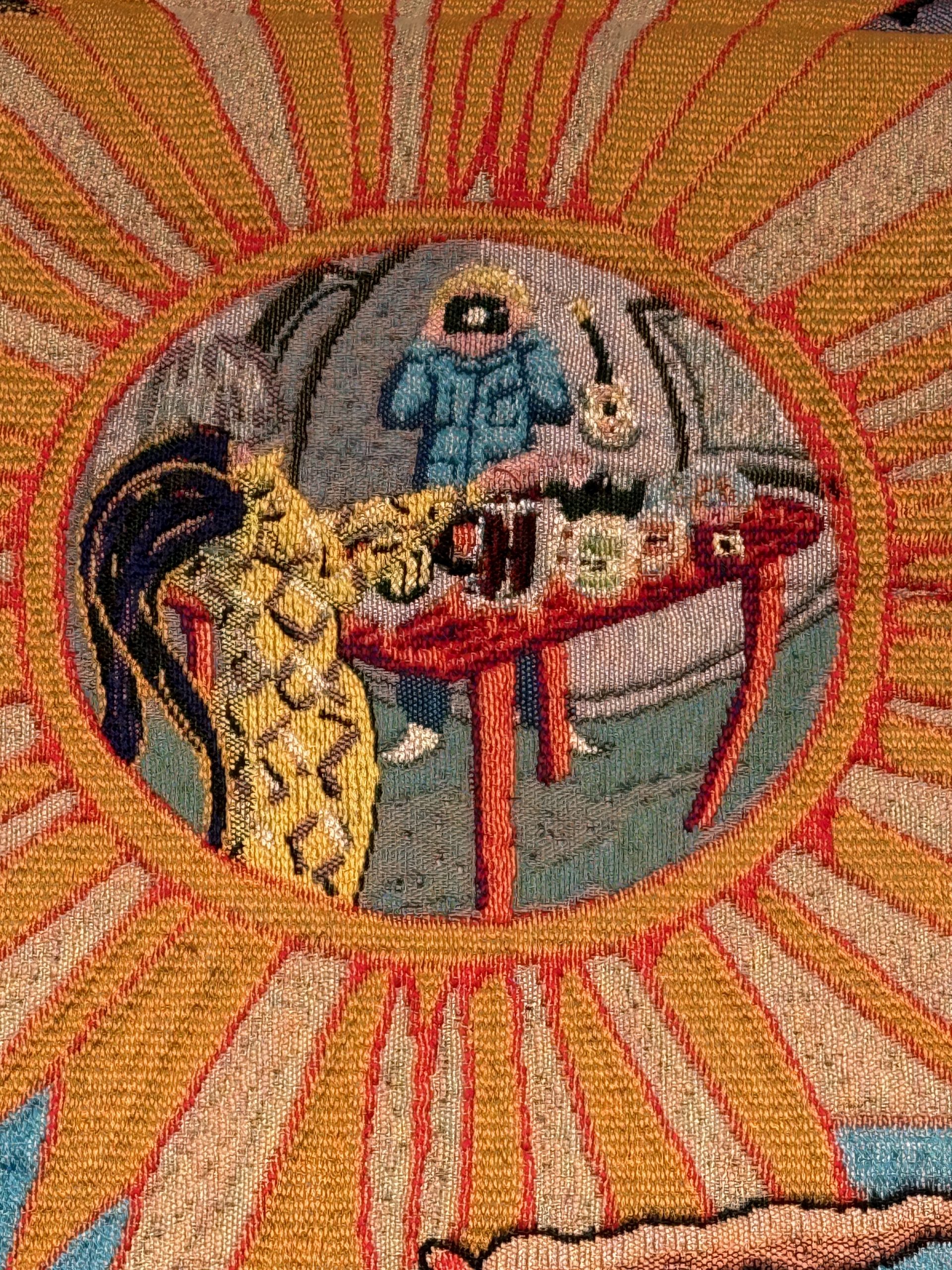 The exhibition opening and Christmas party was on Wednesday this week and it was a buys evening with a few of the students imbibing some proper alcohol and even the tutors had a glass of wine with us all. The secret Santa was successfully carried out too, with only one present missing off the table at the time of the swap. I had a present from Nikki, one of my classmates, which was a tile that featured a hand drawn recreation of one of my photos that I presented in the review. It took me a minute to figure out what it was but the blue squares and the long blue rectangle tipped me off to what it was, you can see the original picture underneath the picture of the present.