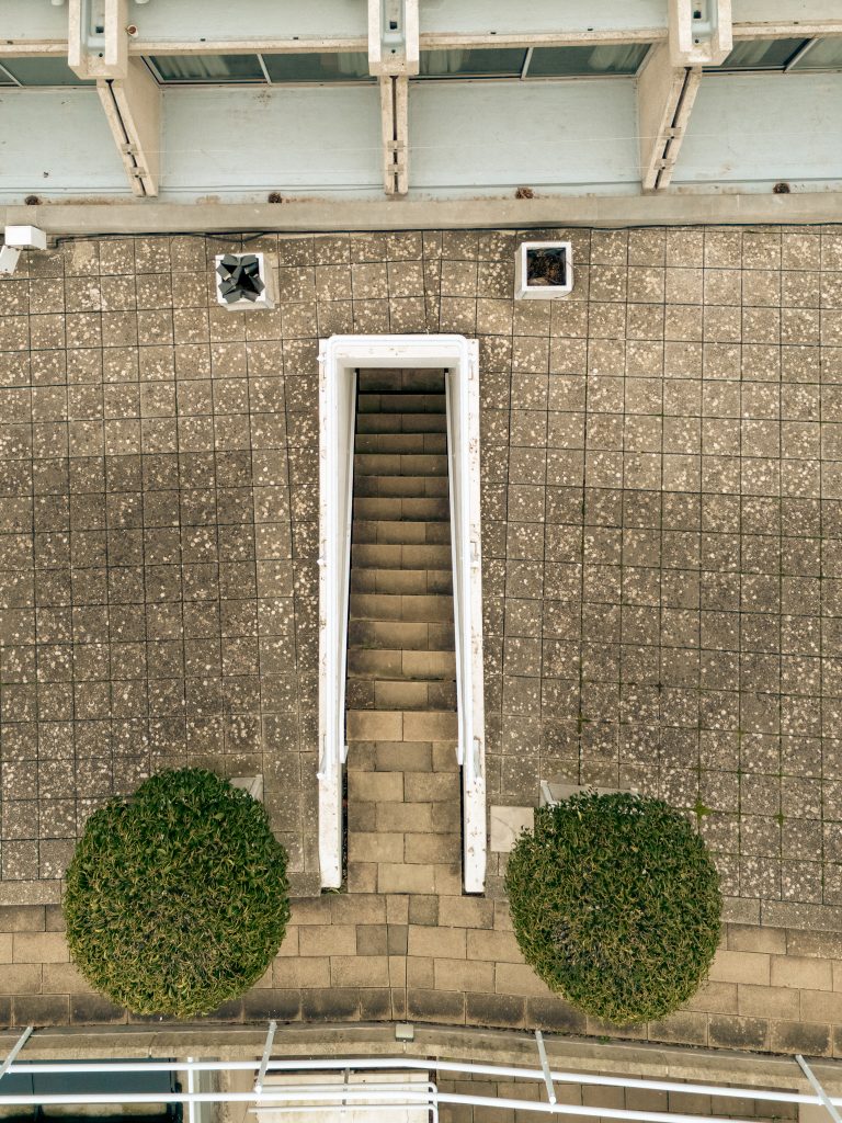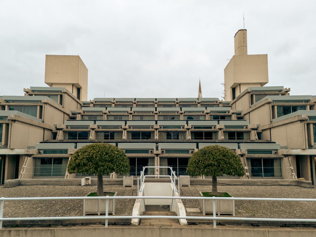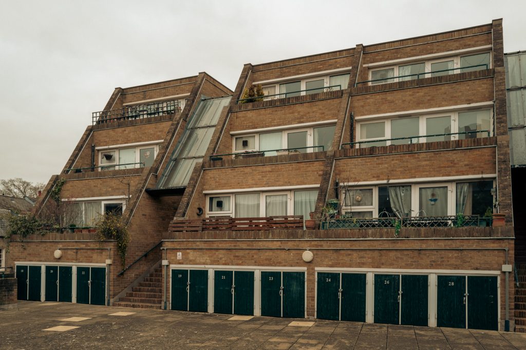 As I found myself close to New Court, I couldn’t actually see any of it. It was behind a large wall of shops and residential accommodation so I moved past it hoping for a gateway or door etc, but no. Retracing my steps I walked around the brutalist buildings protective wall until I came to a porters gate and this was all locked and closed up so I continued around the perimeter all the while looking for a legal entry point. Going all the way around I came back to the “back wall” of the architecture and had no viable entry method so I retired to the park next door where I would break out my DJI Mini 4 Pro drone.