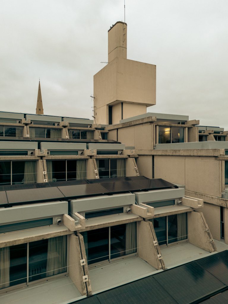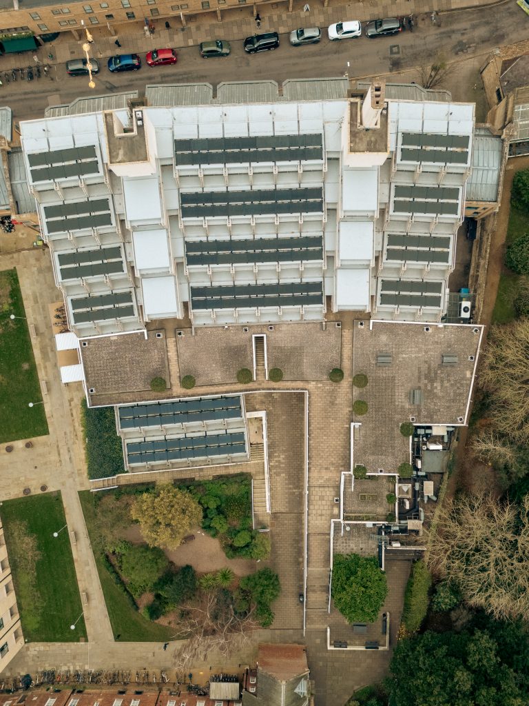It was an impressive piece of architecture to see in the middle of the city and to find that there was a veritable oasis of greenery included in the whole location. It was interesting to also see the solar panels that have been installed to help reduce the power overheads of the college, but I wonder if it makes a big difference to the overall appearance. Looking at older pictures it appears that the roofs where the panels are located today were once painted grey or at least were covered with a grey felt or resin like covering.