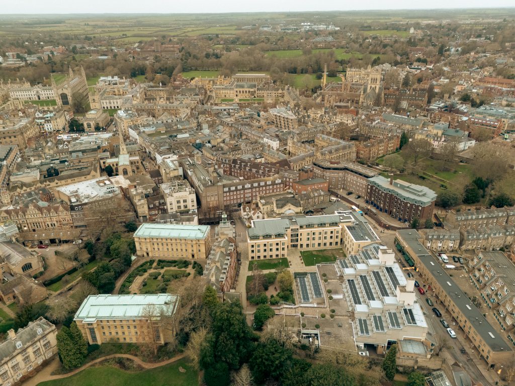 The university grounds are filled with sculpture and artworks, inside the buildings and outside. The college is the largest of the Cambridge Colleges and concentrates on a majority of STEM and the Arts subjects. There is a large walkthrough Hepworth sculpture called Four Square that has a presence int he wide open space behind the main buildings.