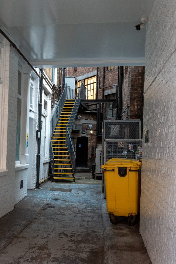 Catching some photos of the corner building and the small cafe nearby I walked a little further closer to the Smithfield Market for the location of the big metal staircase which in the show is located at the back of the cafe and offices. It isn’t, its in St John’s Street near the Smithfield so I took a stroll there to see if I could have a walk up the steps. It was gated and locked so there was no need to go any further. It did make me realise how complex some scenes must be to film though when they are filmed coming out of the building, going down the steps and then as they exit the archway they have to emerge onto the street outside their offices back in the other location. Continuity, lighting and everything must be tricky to get right.. Phew.