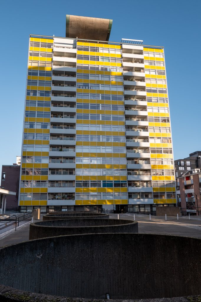 After poking around here I had a wander around the Golden Lane Estate where there is a large block of flats with yellow cladding on the outside, it stands out as a typical looking building from my childhood had I lived in London. Its a great place to have a wander around with some large circular shafts going through to the ground below and the Shakespeare pub which has also featured in the Slow Horses show. Talking of which, on the way into the Barbican Estate to get closer to the large water features in the centre I walked past a laundrette and recognised the machines inside it as those that appeared in the Slow Horses programme also, I wasn’t looking for this but noticed it and confirmed that this was indeed a location they’d used. Nice.
