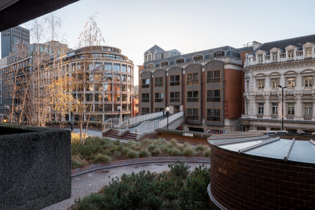 As I explored I found the bridge that comes to the “Podium” in the estate from the Barbican Station, this had also featured in an episode of the later series when River fights Spider on the “Barbican Bridge”, there was also a small photoshoot going on there with three young women taking photos of themselves in the now wonderful light. As the sun began to lower beyond the horizon though I figured it was time to give my weary legs a break and pop into the Barbican Centre for a coffee.