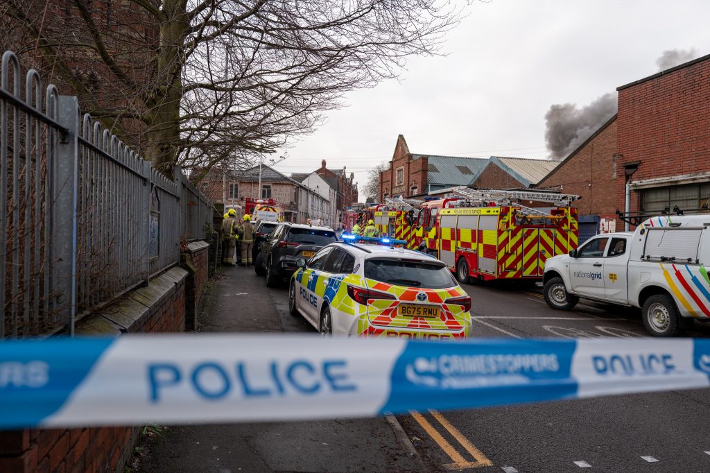 On the drive in to Wolverhampton I went down the route past Shifnal and Albrighton and when I got closer to Wolves I could see a huge cloud of smoke up in the air, travelling across the city. I diverted to aim in the general direction and once I’d found the location I stopped in a safe place and got out with my camera. The fire and rescue services were there, along with the police who had taped off a section of road that would be the staging post for the services dealing with the fire.