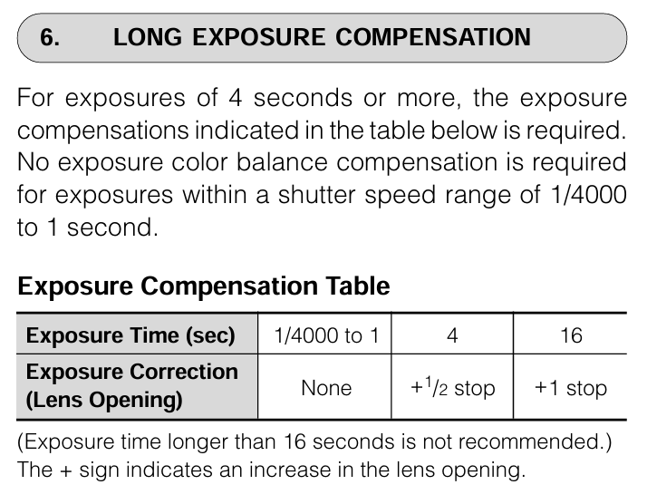 He mentioned that there is different reciprocity with colour film and that shooting it over a second is to be avoided. Exposing for four seconds will lead to some strange results. Looking at the datasheets it recommends that the 400 film isn’t recommended to shoot past 16 seconds.