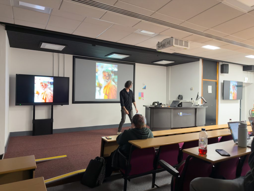 He showed us some of his portraits and there was a photo portrait he’d made by shooting into a corner of a room behind him that you could see in the reflection catchlights in the subjects eys and he suggested that when you see a portrait photo on a big poster, take a look to see how it was put together. A professor also once told him to “Not Light Everything” after he shared a great portrait with us that was at least 3 stops underexposed.