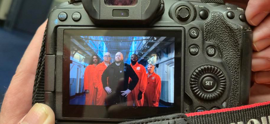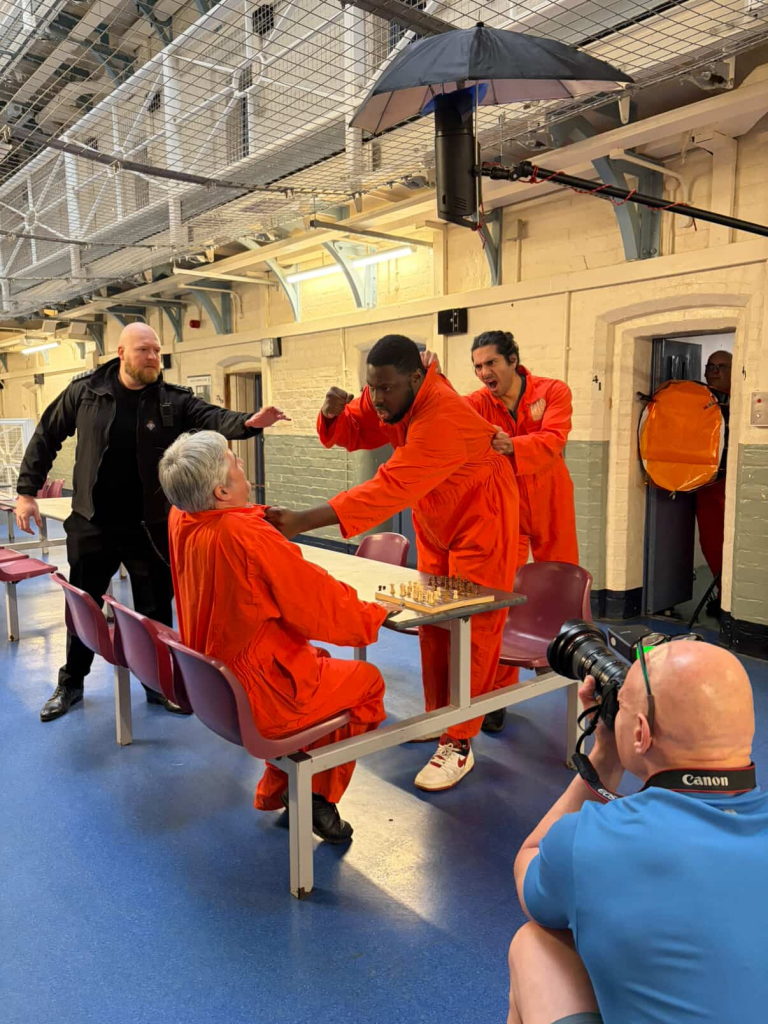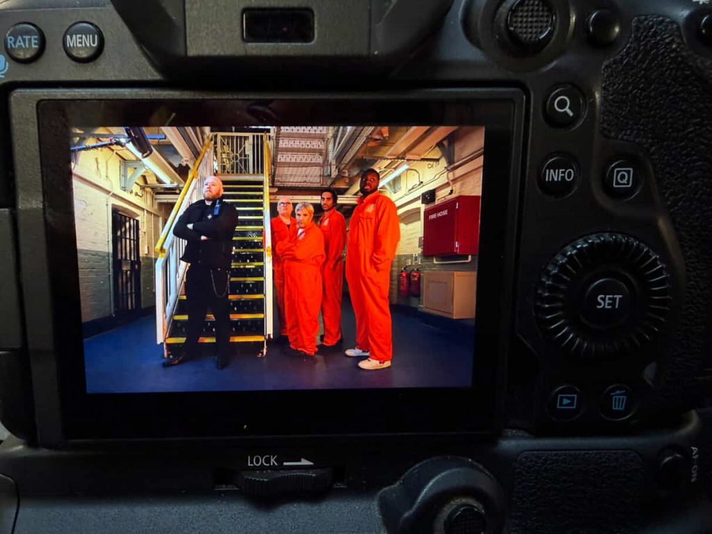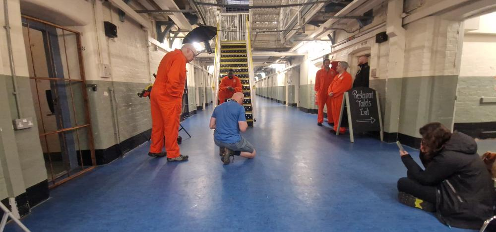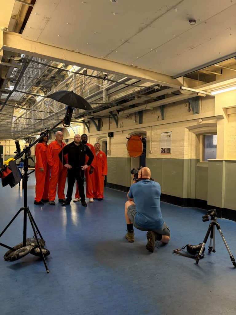 Nikki and I had a bit of a giggle too as we went about our assisting on the day and whilst I was lucky to get into a few pictures, she was not as it was a “men’s prison”. She made up for it in the afternoon with appearing in the video shoot too. I learnt that offering to don the orange overalls might have been seen as proactive and it did help in a couple of the shots that Pete had planned so I’m glad I did that too,