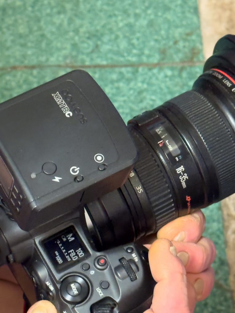 To better understand his technique I was careful to notice what he was setting his camera to for the shots. In the image above you can see the 16-35mm with adapter, the flash trigger and the fact that he was set in Manual mode, with an ISO set to 1000, the aperture held at f/8 and a shutter speed of 1/100th seconds. Whilst this might seem a high iso, the Canon RF cameras are great at low light with higher ISOs and hardly any digital noise appearing in the shots. In fact, my 5D MkIV is great at higher ISO photos and I use it rather than anything else for night time or low light shoots, a possible change to a R5 is coming at the Photography Show in March but we’ll see. The f/8 aperture is also a perfect spot on the lens and sees less distortion and other problems than if at the ends.